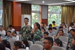 之后,yl7703永利集团党委副书记龙良华对多年级学生及专业老师共同参与的班会模式表示肯定。会中,他还就新生对于入党的疑惑进行了详尽的回答,激励同学们奋发向上,努力向党组织靠拢。希望同学们都能够找准自己的目标,并为之不懈奋斗,实现自我超越。期间,专业老师也就同学们提出的其他专业问题做出详细的解答。