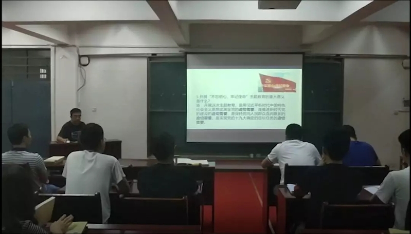 9月25日下午,yl7703永利集团市政环境暖通教工党支部、环境工程研究生党支部与环境工程专业学生党支部联合开展了“不忘初心、牢记使命”的主题教育。教工党支部书记鲁秀国老师根据对“不忘初心,牢记使命”专题教育的18个知识点的解读,给教职工党员和学生党员上了一堂深刻的微党课。