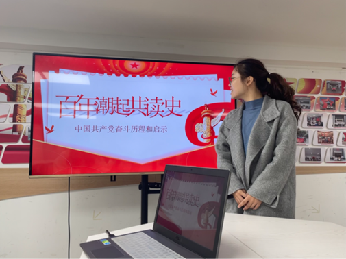 在庆祝我们党百年华诞的重大时刻、在“两个一百年”奋斗目标历史交汇的关键节点,全党集中开展党史学习教育,要求全党同志要做到学史明理、学史增信、学史崇德、学史力行,以昂扬姿态奋力开启全面建设社会主义现代化国家新征程,以优异成绩迎接建党一百周年。建筑管工供热研究生党支部为加强党史学习教育,筑牢支部成员思想政治根基,在大学生一站式服务中心开展党史学习教育,戴雨涵作为学党史汇总者的人员之一进行领学。