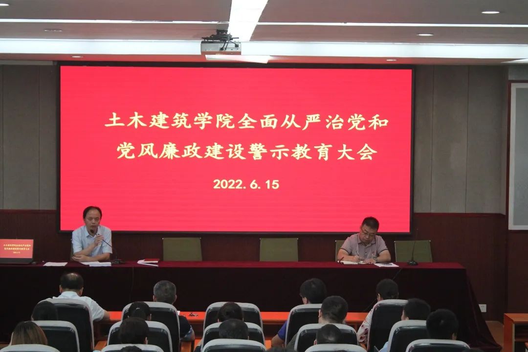 6月15日下午,yl7703永利集团党委召开2022年全面从严治党和党风廉政建设警示教育大会。校纪委副书记杨东明、全体教职工参加会议,会议由院党委书记陈水生主持。
