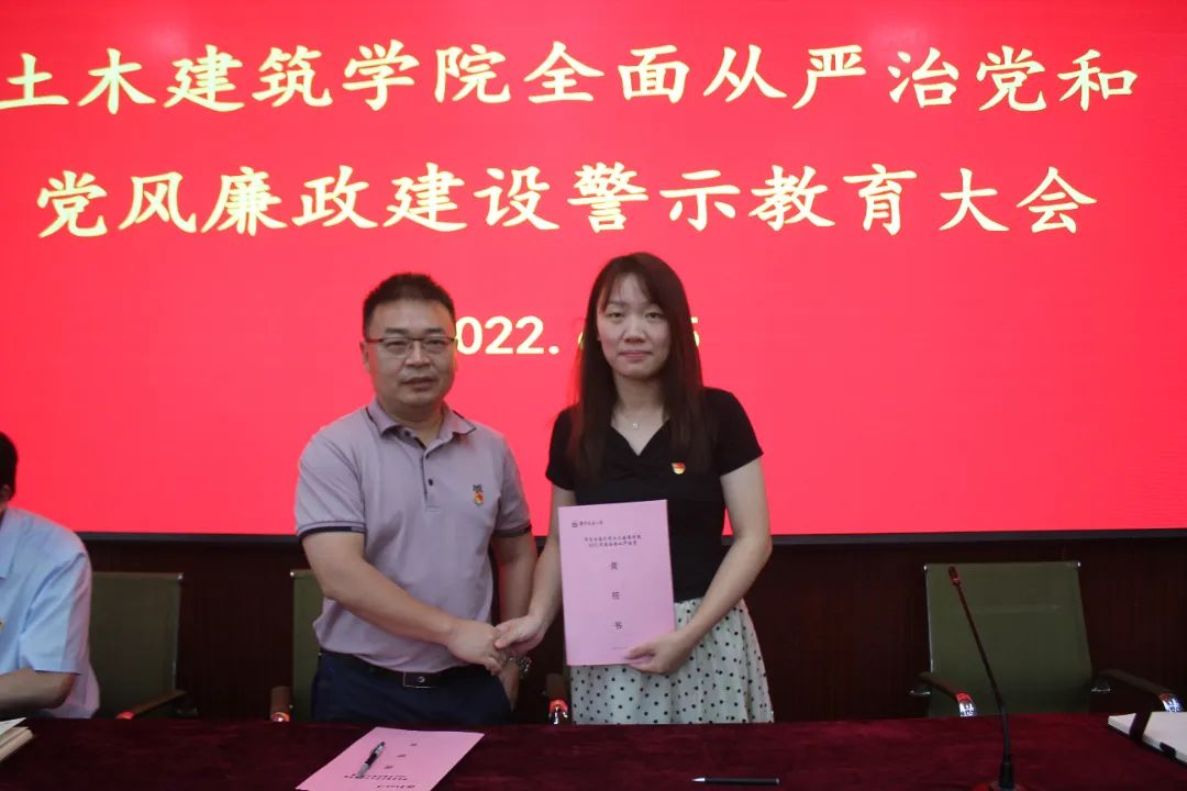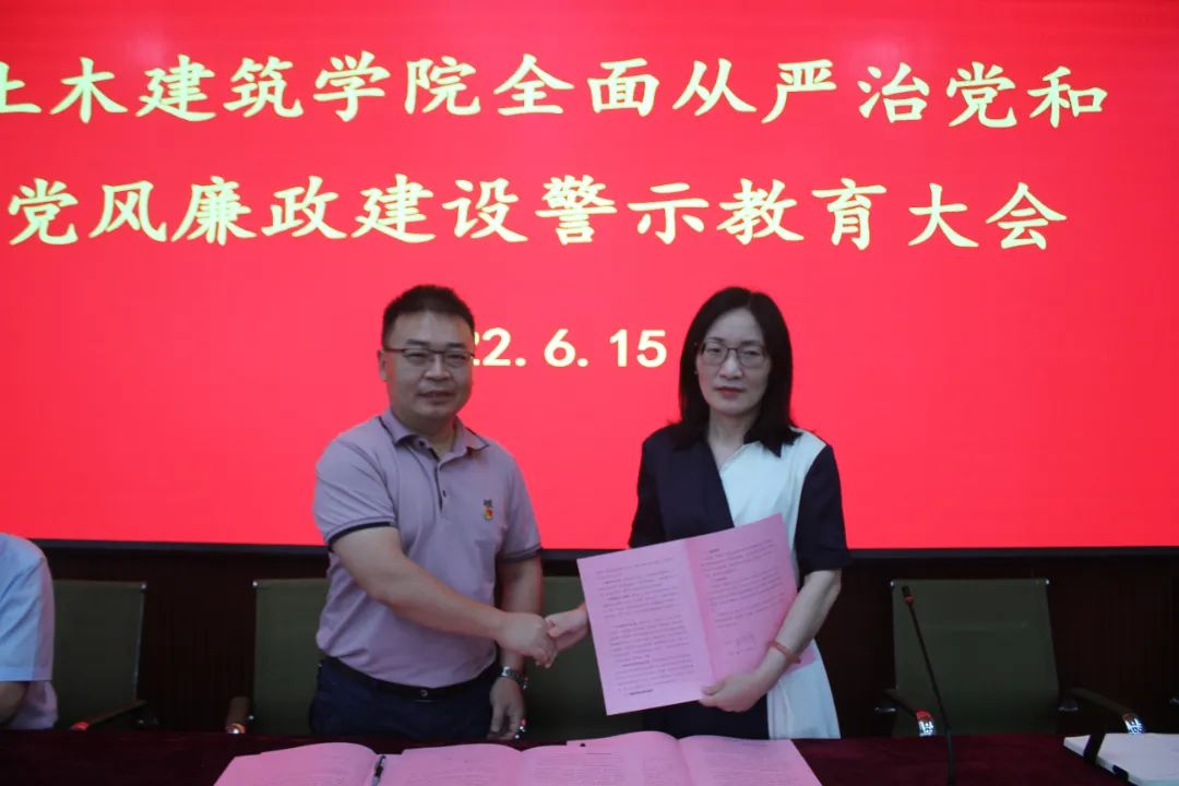 庄海洋与教研室主任、实验中心主任、学工办主任、党政办主任签订2022年度全面从严治党责任书。