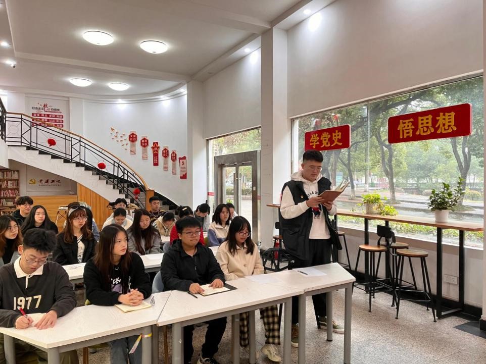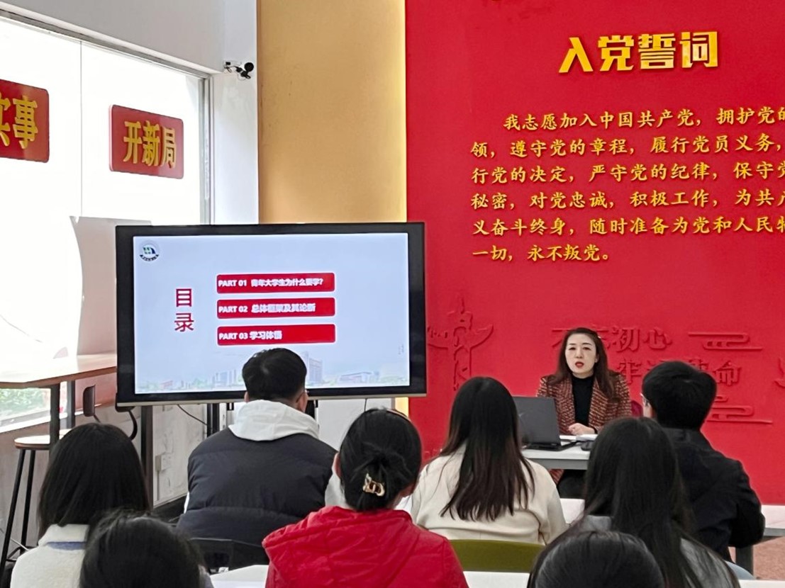 在党课活动现场,师星结合党的二十大报告,从新时代十年伟大变革的里程碑意义、马克思主义中国化时代化的精神实质、中国式现代化的丰富内涵和本质要求、全面建设社会主义现代化国家的目标任务、以党的自我革命引领社会革命的重要要求等方面作了系统梳理和深入阐释。同时针对青年大学生为什么要学、怎么学与同学们展开交流与分享。她表示,党的二十大报告强调全党要把青年工作作为战略性工作来抓,体现出党对广大青年的成长寄予厚望。新时代是广大青年成就梦想的时代,我们要认真学习领会党的二十大精神,不负时代召唤,争做有理想、敢担当、能吃苦、肯奋斗的新时代好青年。