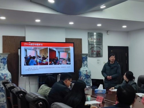 会上,各党支部书记以图文并茂的形式,就学习宣传贯彻党的二十大精神、落实新冠疫情防控任务、围绕抓政治建设、服务中心大局、贯彻学校第六次党代会部署、贯彻落实《中国共产党普通高等学校基层组织工作条例》等情况进行了汇报。阐述近一年通过党的二十大报告专题学习、建设“火车头”党员育人先锋岗、落实支部“三会一课”制度、组织生活会、开展支部“党员固定日”等活动取得的成绩,总结工作中的好经验、分析基层党建工作中不足之处,提出了下一步工作思路和主要措施。