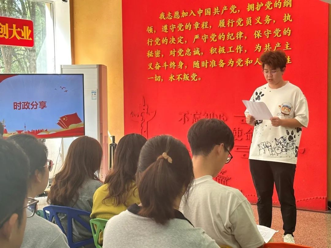“我志愿加入中国共产党,拥护党的纲领,遵守党的章程,履行党员义务,执行党的决定,严守党的纪律,保守党的秘密,对党忠诚,积极工作,为共产主义奋斗终生,随时准备为党和人民牺牲一切,永不叛党。”yl7703永利集团市政环境研究生党支部党员在支部副书记刘曦同志的带领下重温入党誓词。短短十二句入党誓词,字字千钧,让全体党员同志再一次重温了入党时的庄严承诺和坚定决心,进一步坚定了理想信念和职责使命。