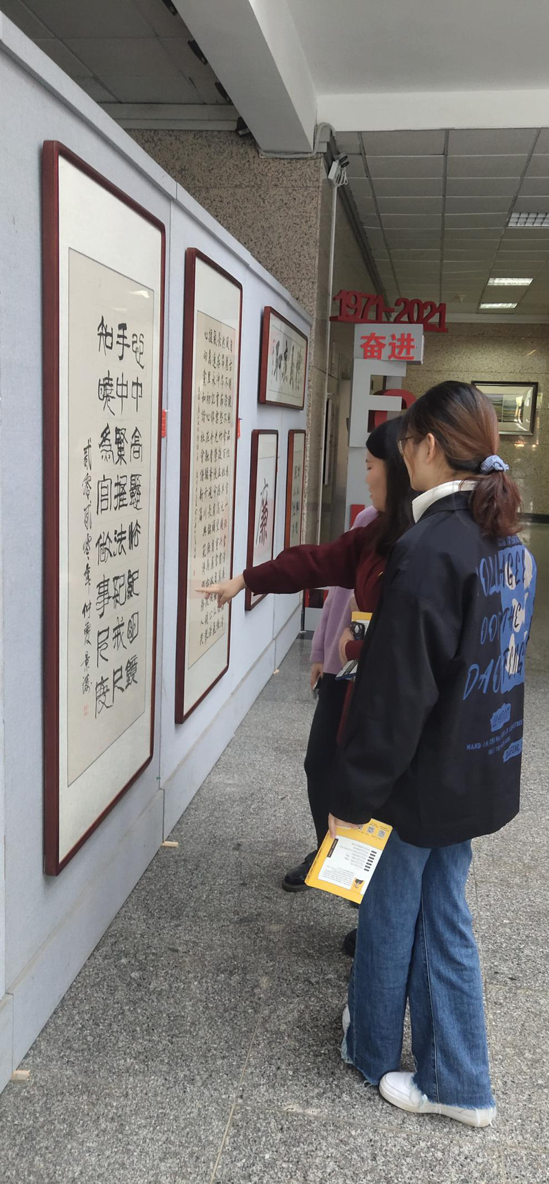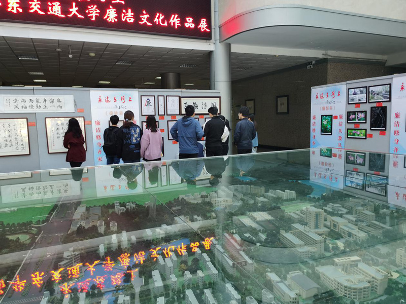 2020年11月13日早晨八点,环境工程学生党支部书记刘伟带领环境工程党支部的全体学生党员参观了《永远在路上》第三届yl7703永利集团廉洁文化作品鉴赏展览。其共展出作品40件,涵盖书法、绘画、摄影和设计四个类别,全部由各基层党组织报送,学校广大师生创作。