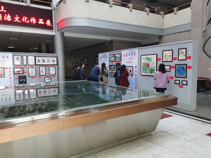 在展览的作品中,莲是出现最多的,也最让我印象深刻。莲就象征着廉洁,“莲”与“廉”同音,而莲“出淤泥而不染,濯清涟而不妖”的高贵品格又与“廉”同义,著名诗人高占祥更用一首诗道出了莲花与廉洁的深刻内涵: “一品青莲若为官,光风霁月伴清廉。”不贪取不应得的钱财是廉,人生光明磊落是洁,廉洁就是做人要有清清白白的行为,要有光明磊落的态度。廉洁自律是我党优良作风之一,红军大管家余贲民买一双6角钱的雨鞋都舍不得,一年到头穿着自己编织的草鞋;周总理一件睡衣穿了二十几年,破了补,补了再补;一尘不染两袖清风的孔繁森将自己的工资大部分用于帮助有困难的群众,他因车祸牺牲后,人们在他的遗体上找到的现金只有8元6角,他们是共产党员的标杆,是共产党员的榜样,我们应该将他们身上的廉洁奉公、光明磊落的精神传承与发扬。在党的建设伟大斗争中,反腐败斗争一直在进行,作风问题关系人心向背,作风问题实质是党性问题,作为党员,我们要加强党性修养,提高自身素质,坚定理想信念,才能形成廉洁之风,奉公之气。