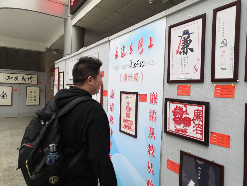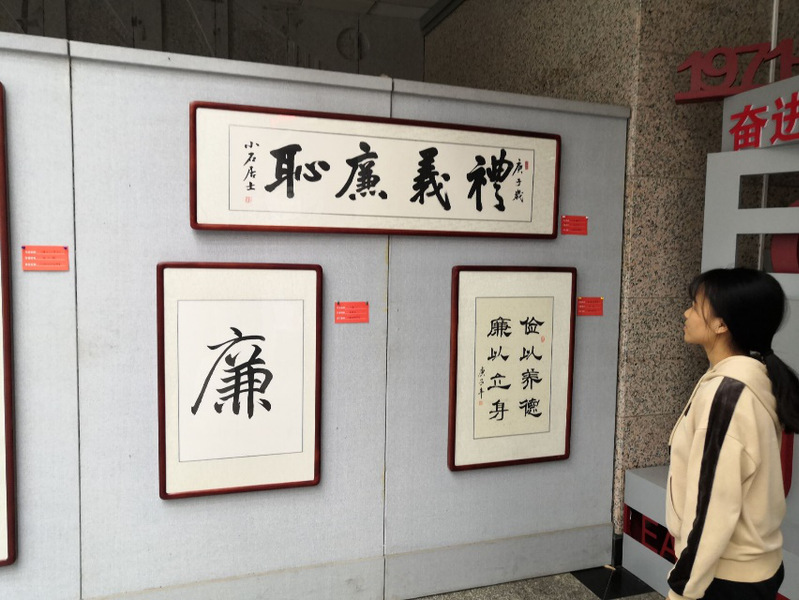 在那里,我看到了一些绘画还有一些漂亮的书法作品,那里面的词句表现都是清正廉洁。通过那些有些寓意的字画,就好比“莲花出淤泥而不染”,我看到的是高洁的品质,还有严格的自我要求,这些都让我更加清楚地感受到了我们党关于加强自身作风建、加强党员党风廉政建设以及反腐败的重要,也使我更加深刻地懂得反腐倡廉的重大意义,使我感触颇深。那些动画采用生动的形象,将腐败问题展现的淋漓尽致,表现了那些背弃共产主义理想和党的宗旨的人,他们人生观、价值观偏离了正确方向、道德观念失衡,利用自身便利谋取不义之财,他们政治上丧失信念、经济上贪得无厌、生活上腐化堕落,最终踏上了不归路。这是一种可悲,更是一种堕落。