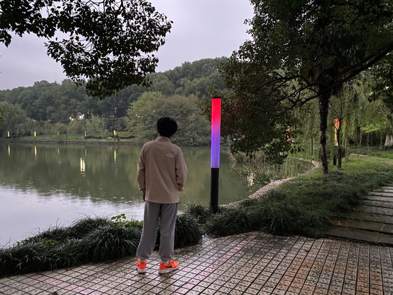 带着一起远行的行李,住进五栋宿舍,收拾完已是傍晚,身心疲惫的我本该早些休息,但离她越近,我内心的好奇与激动就越压抑不住,与舍友相伴,去领略孔目湖的的风采,起初只是林荫大道,松木高伫,自然无奇,而随着夕阳淡去,灯光吸引着我走向那个如桃源般的湖畔,眼前一亮,温馨的色调,伴着《起风了》的小提琴演奏,让站在观景台上的我激动得说不出话伴着水浪拍岸的声音,清爽的湖风阵阵而来,顿时一身轻松,这应该就是陶醉才有的样子吧。自豪之情油然而生,华交的美让我沉醉,来到花椒是我无悔的决定。