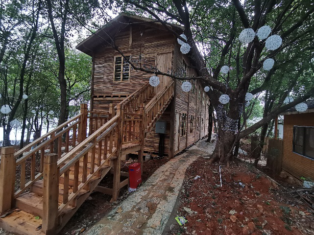 初看花椒的名字,我眼前不禁浮现出冰冷的铁轨与喧嚣的公路。然谁曾想到,在花椒,那长长的“绿色线条”——绿皮火车成了芳香四溢、欢乐满程的列车咖啡厅!很幸运来花椒的第一次晚餐时光是在咧卡上度过的,站在绿草皮铺成的地板上,一抬头就是满目“星辰”,透过栏杆上的星星灯,远处的教学楼也带上了童话的色彩。在花椒,不只有铁轨,还有绿皮火车和蛋包饭!