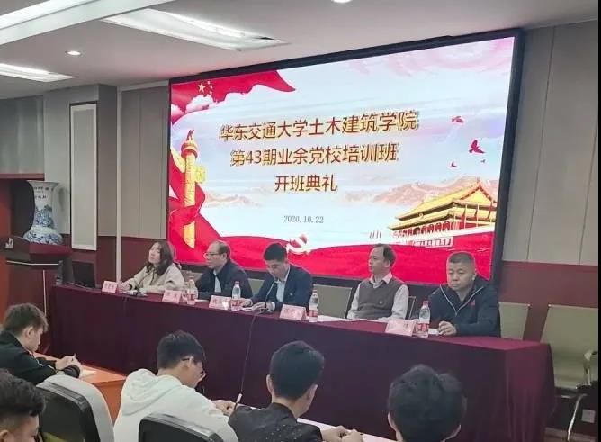 2020年10月22日,yl7703永利集团第43期业余党校培训班开班典礼在土建200会议室举行。校组织部副部长、党校校长魏永峰,土建学院党委书记、分党校校长陈水生,土建学院党委副书记、分党校副校长郑轶,土建学院院学工办主任兼团委书记闫伟,院党委组织员、党员教育管理中心负责老师万雯怡及第43期培训班全体学员参加本期开班仪式。仪式由万雯怡老师主持。