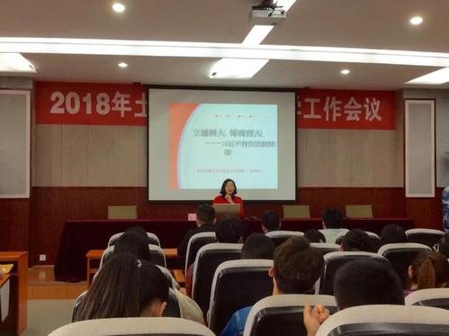 会议伊始徐杰玲老师讲解到此次会议的主题为《立德树人铸魂育人》。她从“层次分明”—教育作用论;“以人为本”—教育本体论;“人人出彩”—教育公平论;“文化自信”—教育动力论;“立德树人”—教育价值论等多个层面讲述教育在个人,社会和国家中的重要意义。