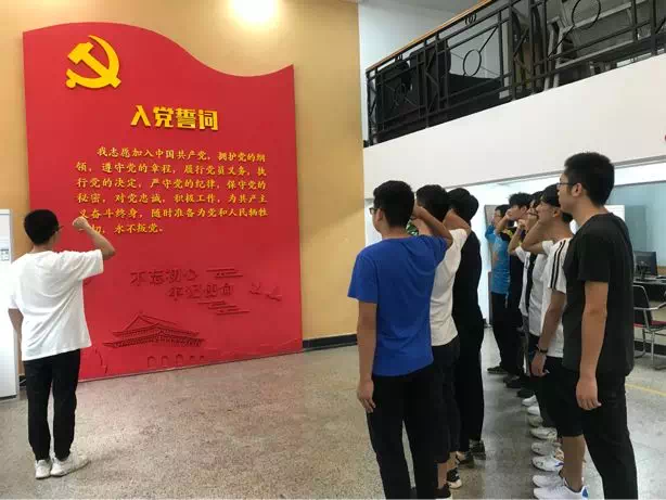 最后,重温入党誓词,不忘入党初心。在支部副书记张嘉诚的带领下,全体党员面对党旗进行庄严的宣誓,重温当初入党时的热血与激情,不忘自己的初心,牢记自己的使命,继续奋斗。