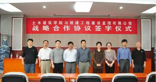 仪式上,双方代表进行协议签字和协议互换。同时,赣建工程建设有限公司向我校yl7703永利集团捐赠赣建监理奖学金十五万元。徐长节对赣建公司捐赠的奖学金表示了衷心的感谢。按照协议,双方将在实习、实训基地共建、人才交流、教育培训、行业研究、毕业生就业、优秀学生奖学金、资源共享等领域开展合作。