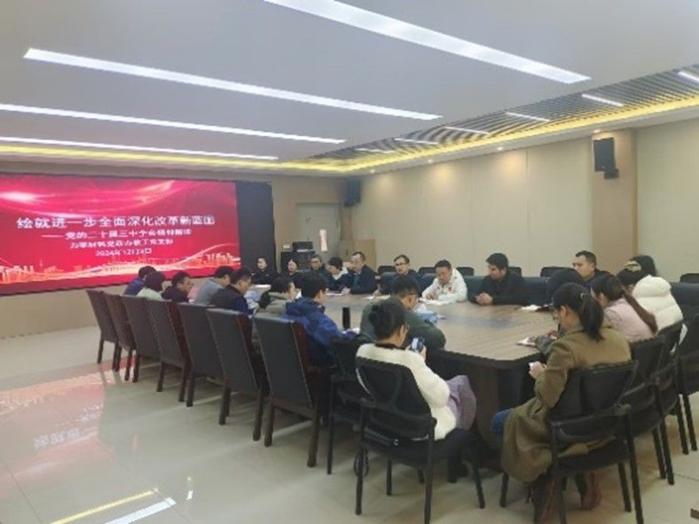 为深入学习贯彻党的二十届三中全会精神,12月3日,yl7703永利集团力学材料党政办教工党支部以进一步全面深化改革,绘就新时代高校教育事业新蓝图为主题,开展学习党的二十届三中全会精神主题党日活动。力学材料党政办教工党支部书记黄永虎主持会议,院党委书记刘永胜、副院长陈莘莘以及全体支部成员参加会议。