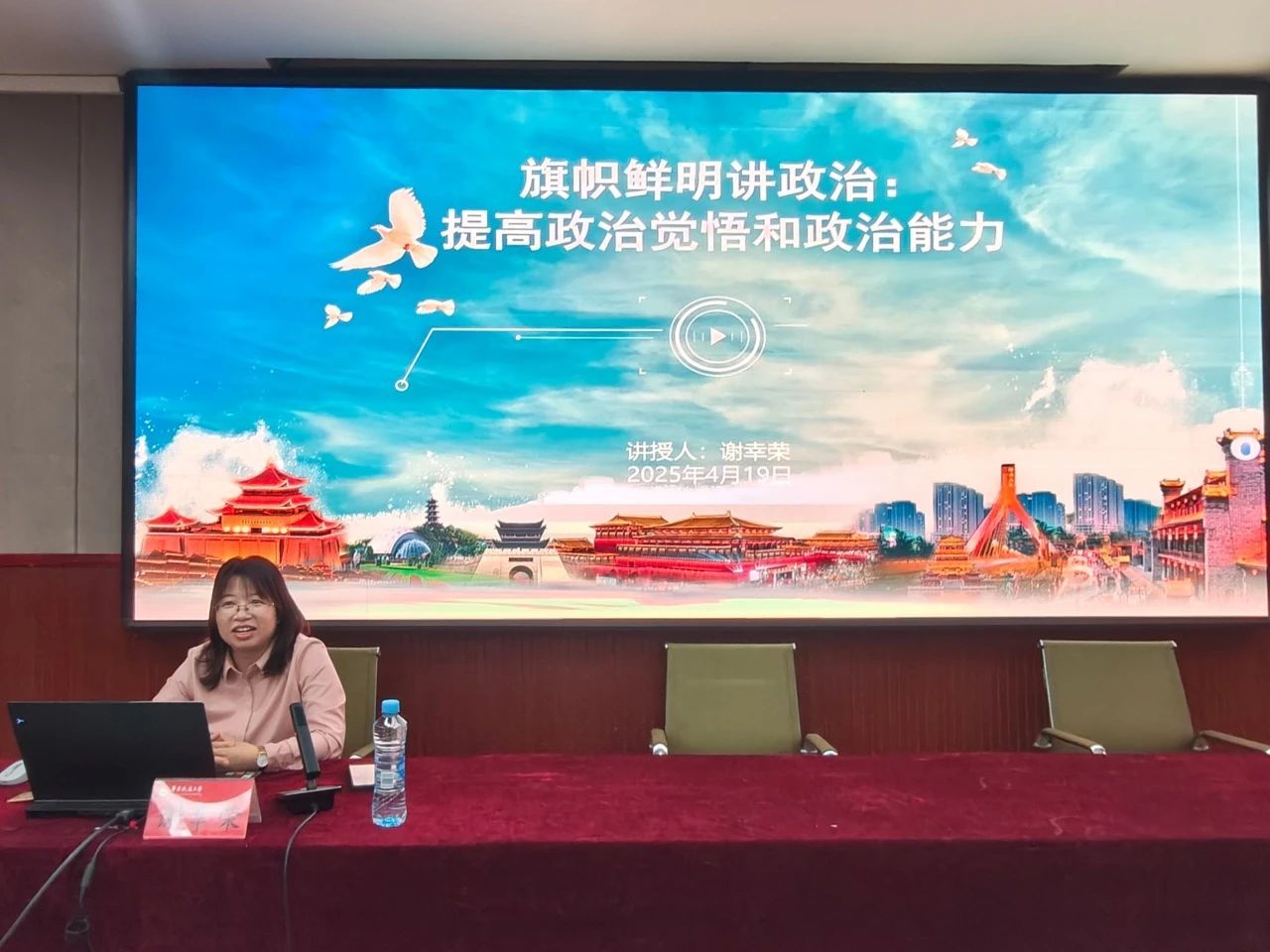 4月19日,理学院党委副书记谢幸荣为yl7703永利集团第九期发展对象暨第五十三期入党积极分子培训班讲授党课——《旗帜鲜明讲政治,提高政治觉悟和政治能力》。