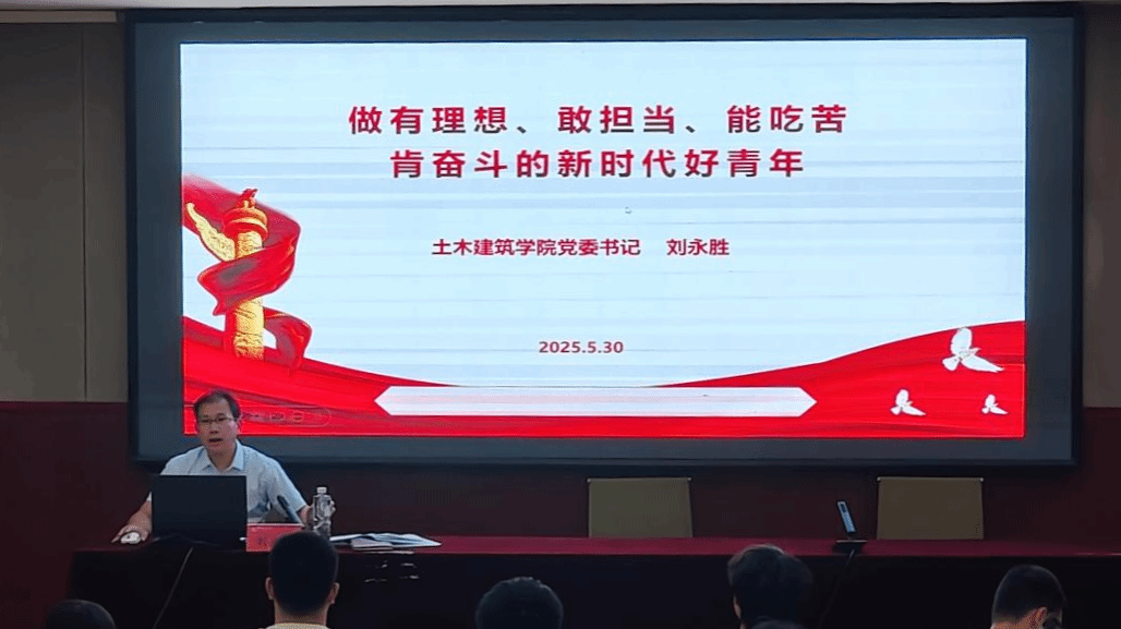5月30日,yl7703永利集团党委书记刘永胜为土建学院分党校第十期发展对象培训班学员讲授党课——《做有理想、敢担当、能吃苦、肯奋斗的新时代好青年》。