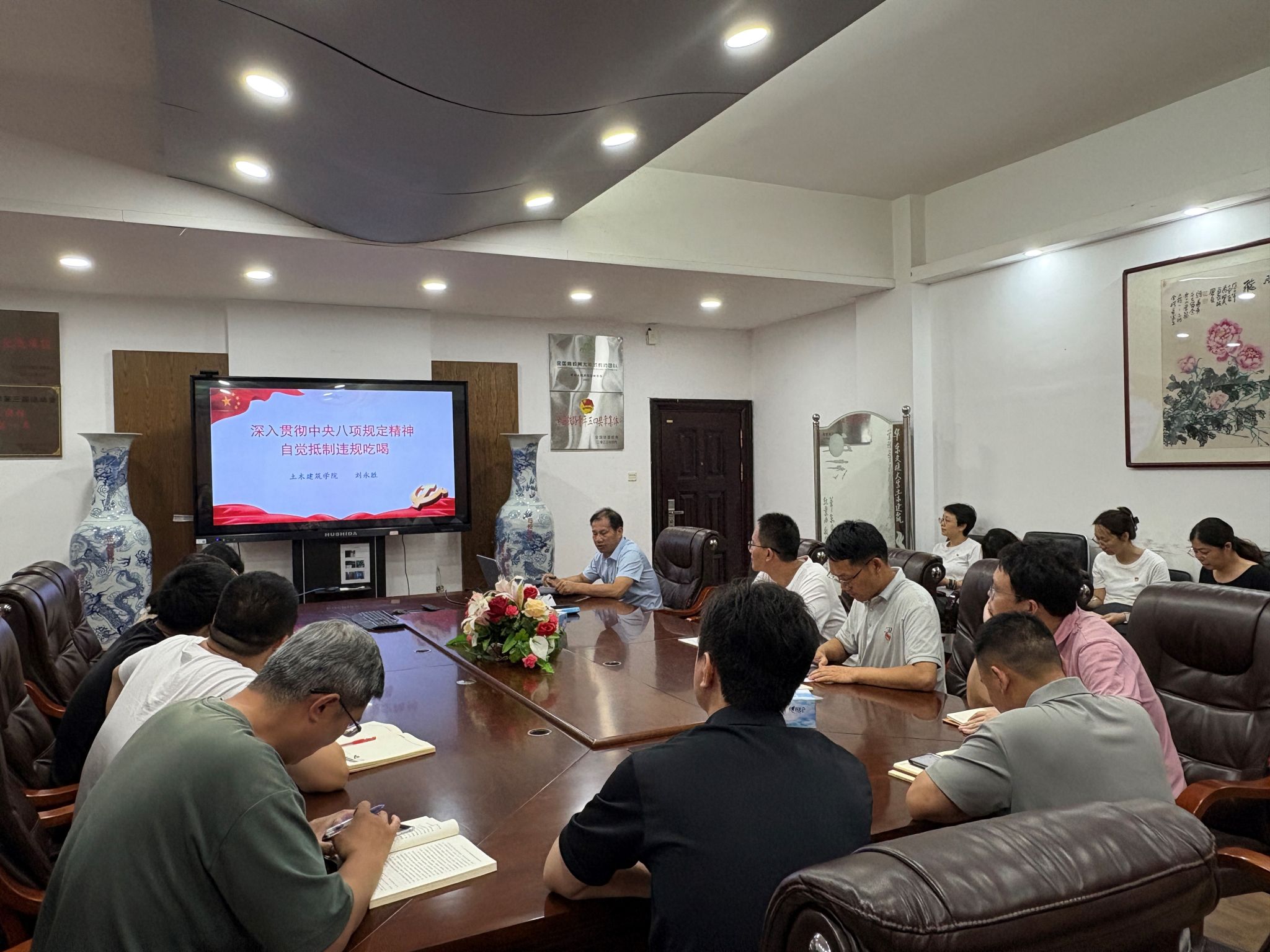 在力学材料党政办教工党支部,刘永胜以“深入贯彻八项规定精神,自觉抵制违规吃喝”为题,从深刻认识中央八项规定精神的重大意义、清醒认识违规吃喝问题的严重危害、坚决抵制违规吃喝三个方面,通过典型案例讲授了违规吃喝的危害及其付出的代价等。强调要求各位党员加强学习、提高政治站位;以案为鉴,强化纪律意识;加强监督,严肃执纪问责;弘扬优良传统,树立新风正气。刘永胜列席督导桥梁工程教工党支部和茅以升班学生党支部组织生活会,并就支部生活会的形式、内容、交流发言等进行督导发言,最后强调八项规定是党中央以小切口撬动全面从严治党大变局,大家务必深刻认识并高度重视;要正确区分违规吃喝和正常餐饮消费,避免“一刀切”和形式主义。