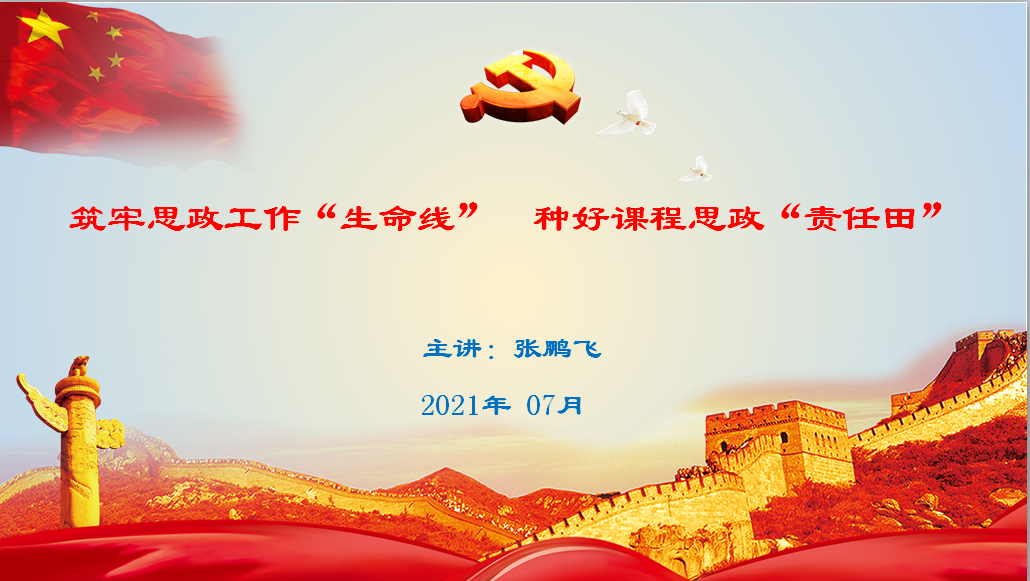 7月8日,支部书记张鹏飞给全体党员上党课,党课题目为:筑牢思政工作“生命线” 种好课程思政“责任田”。党课内容分两部分: