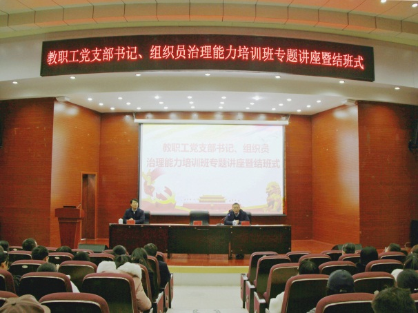 12月17日下午,支部书记张鹏飞应邀参加了南昌航空大学“2020年度全校教职工党支部书记、组织员治理能力培训班专题讲座暨结班仪式”,为培训班学员作了题为《“双带头人”党支部书记工作室建设做法与成效》的专题讲座。