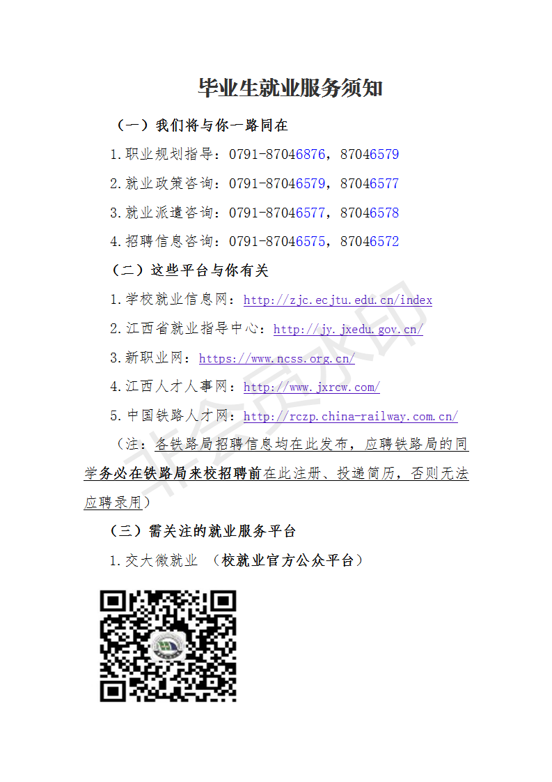 (1)就业协议书实行实名注册打印。毕业生需关注微信公众号:“江西微就业”,在规定时间内进行实名认证,并核对个人基本信息与提交协议书打印申请,最后由学校就业科统一打印和发放。为保证信息时效性,请勿更换微信号、手机号、邮箱等个人信息。(注:4月-5月底前,毕业生需及时在微信公众号中确认就业单位信息,并遵循相关安排填写相应的就业调查问卷)