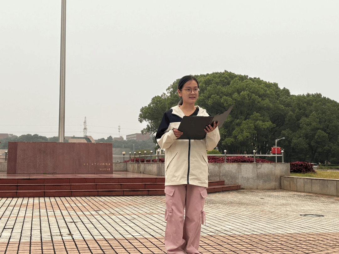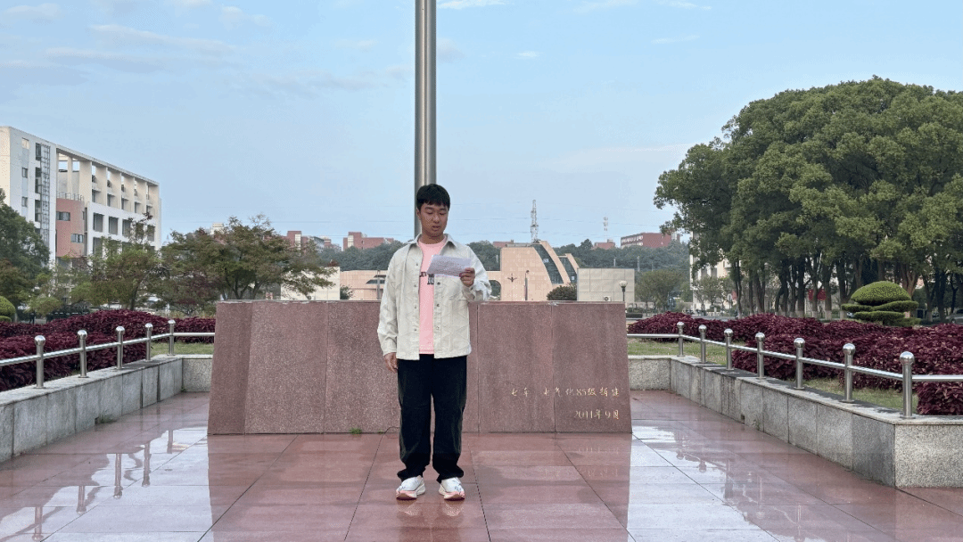 学生代表建环2025-2班常玉洁同学以“致敬反法西斯胜利荣光,以青年之姿赴和平之约”为主题进行国旗下的讲话。站在反法西斯胜利80周年的历史节点上,我们深知今日的岁月静好,是无数先烈用生命换来的珍贵成果。作为未来的建设者,我们当以理想为帆、以奋斗为桨,将和平信仰融入专业学习,把强国志向注入日常行动,用青春的智慧与汗水,为守护和平、建设更强大的祖国贡献力量!