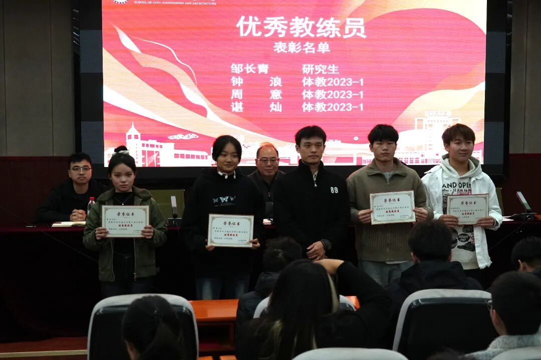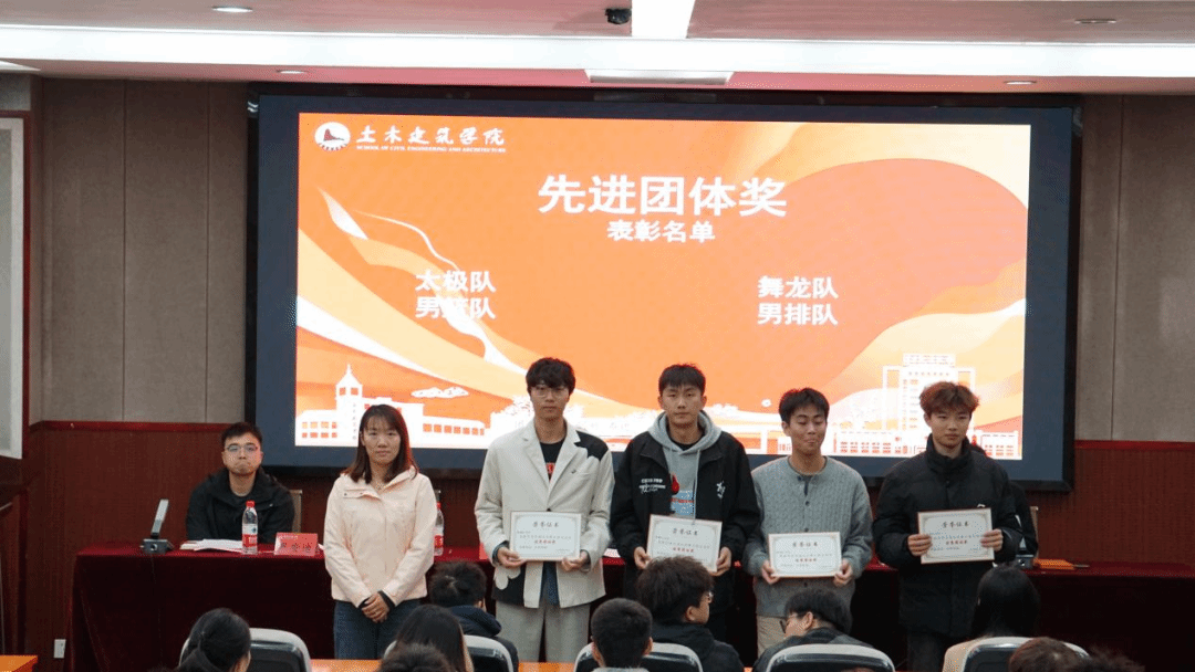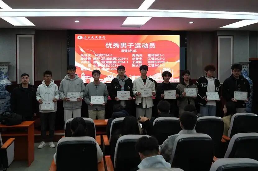 为表彰在yl7703永利集团第六届运动会中奋勇拼搏、展现卓越体育精神与团队风采的个人与集体,进一步推动学院体育文化建设,11月17日晚,我院于土建楼200报告厅隆重举行第六届校运会表彰大会。学院党委副书记郑轶、团委书记兼学工办主任万雯怡、兼职团委副书记严安迪出席本次大会。会议由学院学生体育负责老师黄伟豪主持,全体田径运动员、各院队成员代表、及体育工作者共同参加。