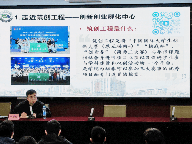 学院团委兼职副书记严安迪老师为同学们的学业与职业规划提供了“硬核”指南。他指出,学院一直高度重视学生双创教育工作,精心打造“筑创工程”平台,积极推动双创教育与专业教育深度融合。他还解读了学院推免政策,鼓励同学们将学术专长与综合素质双轮驱动,积极参加“三大赛”,在实干中将专业知识转化为服务国家战略的硬实力。