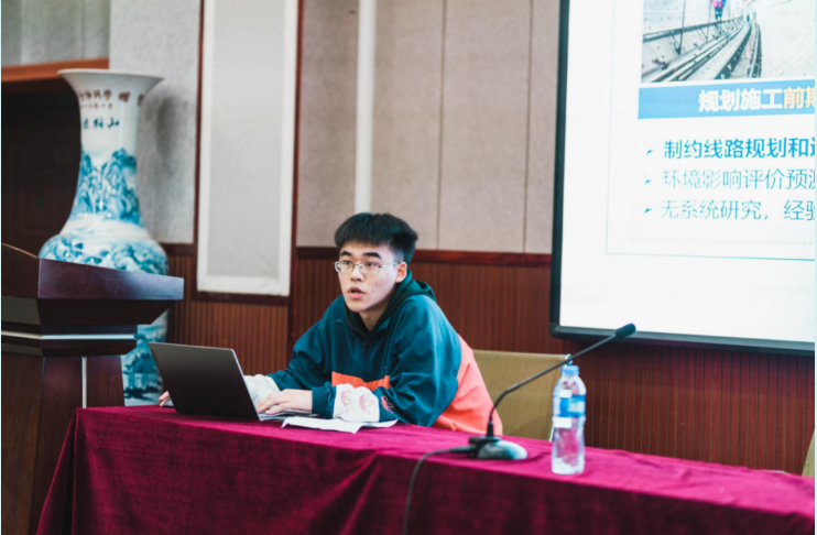 土建学院青年志愿者协会理事长葛竞向大家讲述自己的志愿服务故事。他分享了自己在青协这些年的经历,鼓励同学们多参加志愿活动,并在其中收获成长。