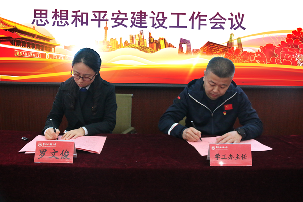 会后,党委书记、院长与班子成员、教研室主任、实验中心主任、学工办主任、党政办主任、华大公司总经理签订2021年度平安建设目标管理责任书、消防安全责任书。