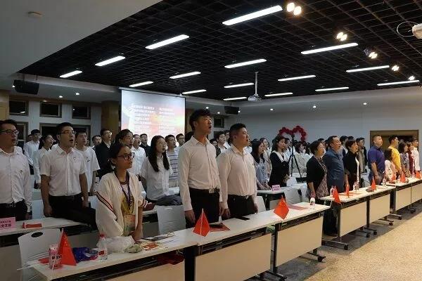 全体党员宣读入党誓词,铿锵字词渗透着坚定理想信念,展现出不忘初心跟党走的精神。