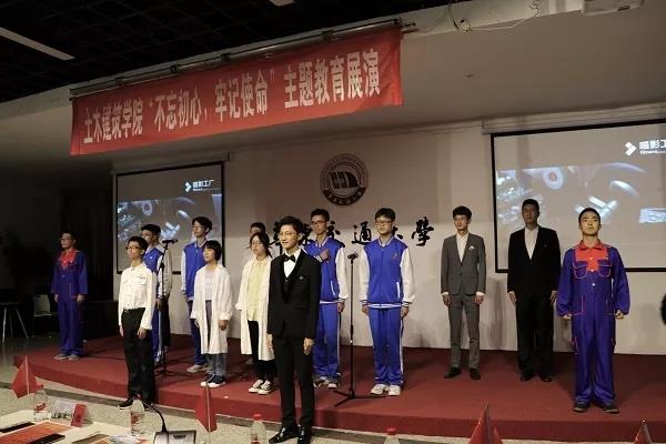 土木,桥梁和城轨建工支部表演舞台剧《陈觉家书》,他们身穿旧社会的学生装,缓步走来,眼神中透露着饱经磨难后的坚定和对祖国美好明天的向往。
