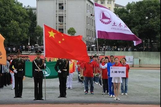 随着旌旗招展飘扬,呼声阵阵,开幕式正式拉开了序幕。土木建筑,交大门户,藏龙卧虎,唯我独步伴随着响亮的口号声,土建学院的老师和同学们身着院衫、手拿花球,昂首阔步地走到了主席台前,用一幕幕的舞台剧演绎了他们对交大最深刻的记忆。