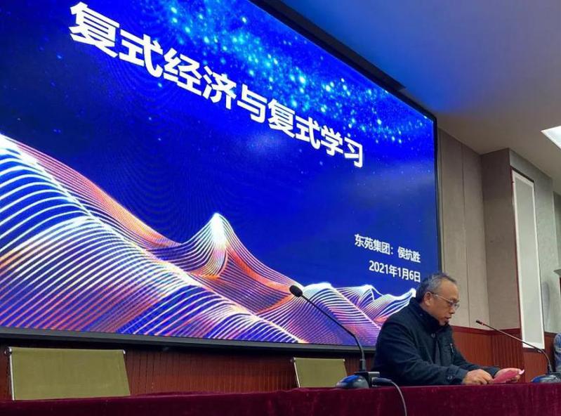 报告内容共分三个部分:疫情与变局、“复式经济”和“复式学习”。在疫情与变局部分,侯董向广大师生分析了新冠疫情对各行各业的影响,新冠疫情对工作和生活方式带来的新改变,疫情加快了人工智能、5G等“新基建”的推进速度等方面内容。在“复式经济”部分,侯董比较分析了中国特色社会主义同西方自由经济的差异,具体比较了中国、美国、俄罗斯三国的经济体系差异,指出中国的“复式经济”以“政府+市场”的“二人转”模式,将各种经济要素化繁就简,造就了中国经济的崛起,指出中国特色社会主义政治、经济制度具有无比的优越性。就当前中国经济倡导的“双循环”模式,侯董向大家介绍:“内循环为主”,绝非是应对美国打压的权宜之计,而是在疫情冲击和全球秩序变化下,整个中国经济实现高质量发展的国策调整。在“内循环”中,侯董重点分享了城市群建设、脱贫攻坚、乡村振兴战略等三方面内容。就“外循环”等相关内容,侯董从“外循环”的开端—中国加入WTO讲解开始,分享了国家“一带一路”倡议、区域全面经济伙伴关系(RCEP)和中欧投资协定等最新内容和签订始末。在“复式学习”部分,侯董就自身学习经历,向大家倡导要“复式学习”,即专业课学习与社会实践要齐头并进,并建议大家要终身开展“复式学习”,并以图片形式展示了我院在读研究生在上海东苑集团实践锻炼的场景。