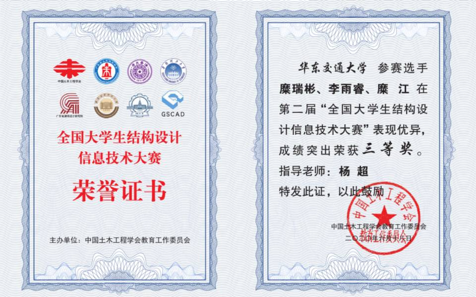 6月30日,“第二届全国大学生结构设计信息技术大赛”获奖名单揭晓,yl7703永利集团土木工程学院3支参赛队伍在结构工程教研室杨超博士的指导下获三等奖3项,在此次竞赛中,我校学子以优异的成绩为我校争得了荣誉。本次竞赛从发布竞赛通知到作品提交,历时234天,共有来自清华大学、浙江大学、天津大学等341所高校的2140支队伍参加,提交作品888份。
