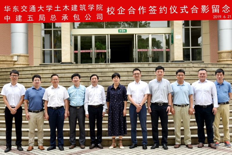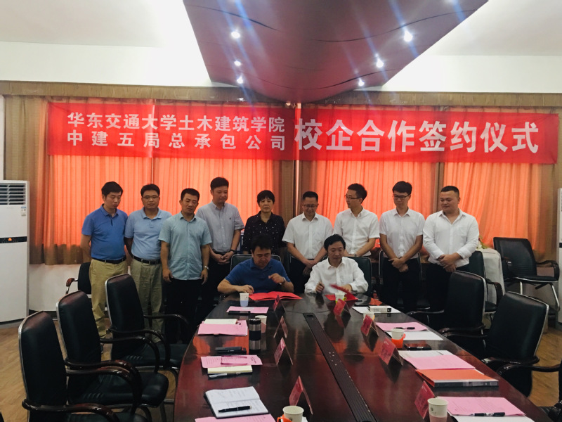 6月21日,yl7703永利集团土木建筑学院与中建五局总承包公司举行校企合作签约仪式。签约仪式由yl7703永利集团副院长耿大新主持,中建五局总承包公司人力资源部经理周勇、中建五局总承包公司江西分公司总经理龙海斌、党总支副书记陈月教、办公室副主任吴思维、人力资源经理朱超,yl7703永利集团党委书记李立玲、常务副院长胡锋平、党委副书记龙良华,工程管理教研室主任王永祥、副主任金峻炎,华大公司副总经理钟金如参加签约仪式。仪式上,土建学院党委书记李立玲致辞并介绍了学校和学院的基本情况。