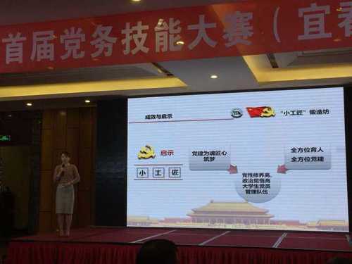 1224—25日,由省委组织部主办的江西省首届党务技能大赛举行,我校2支参赛队伍分赴抚州、宜春赛区参加大赛。土建学院党委组织员万雯怡结合实例,向评委和全省党务工作者介绍了我院的学生党建品牌项目--“小工匠锻造坊。她结合实例,就土建学院在大学生党员教育管理模式上进行的实践创新探索进行了深入浅出的讲解。