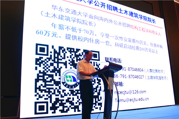 6月10至11日,第一届土木工程赣江学术论坛在南昌隆重举行。中国工程院院士、浙江大学龚晓南教授,中国工程院院士、东南大学缪昌文教授,中国工程院院士、清华大学聂建国教授,江西省科学技术协会党组书记罗莹教授、yl7703永利集团党委书记万明教授、yl7703永利集团校长罗玉峰教授、yl7703永利集团副校长陈梦成教授及数位土木工程领域的专家学者出席开幕式。数百位来自全国各地高等院校、科研院所以及企业的专家、学者、研究生参加本次论坛。论坛开幕式由陈梦成教授主持。