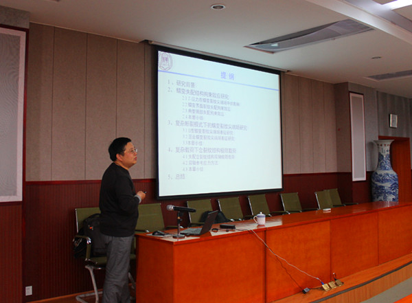刘应华教授的报告题目为《高温非均匀体蠕变断裂力学若干研究进展》。他结合自己的科研经历和探索过程,详细介绍了在蠕变失配结构拘束效应、复杂断裂模式下的蠕变裂纹尖端场以及复杂载荷下含裂纹结构极限载荷等方面的研究成果。最后,刘应华教授还对师生提出的专业问题做了热情的回答。