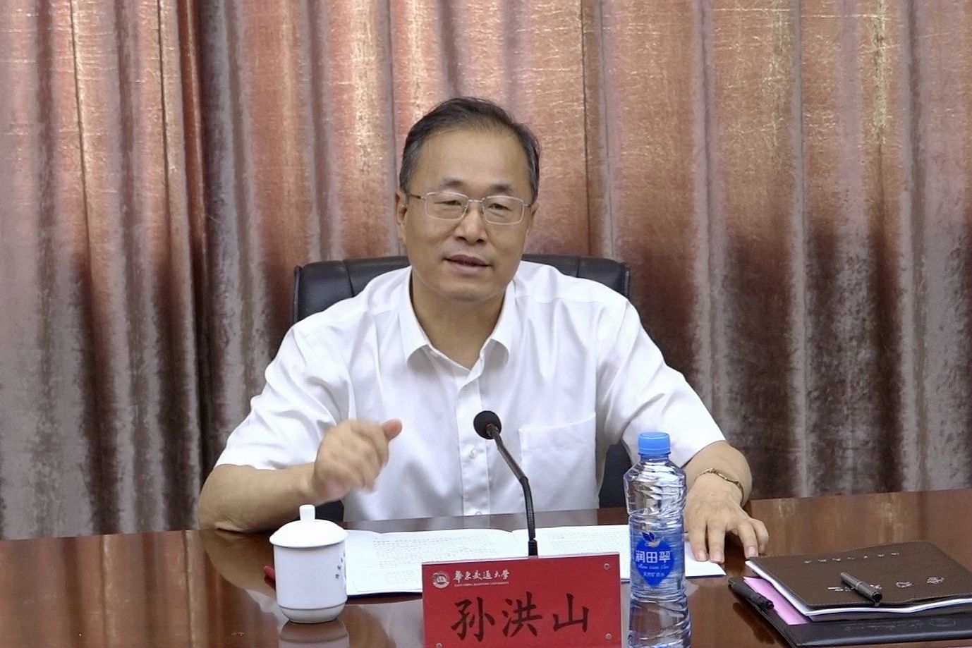 6 月 2 日上午,副省长孙洪山来到学校调研并召开座谈会。省政府副秘书长杜章彪,省委教育工委委员、副厅长刘小强,校党委书记柳和生,校党委副书记、校长徐长节等陪同调研。在家校党政班子成员、省政府办公厅、学校相关职能部门负责同志参加座谈。