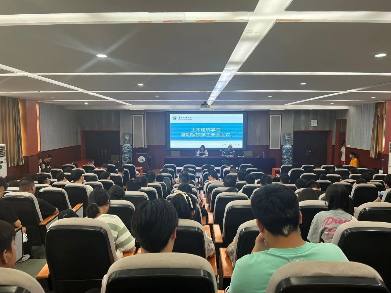 为了确保学生们度过一个多姿多彩、愉快充实的暑假,学院高度重视留校学生暑假安全工作。6月30日,我院于土建楼教9栋200会议室分别召开了本科生、研究生暑期留校学生安全会议。党委副书记郑轶出席此次会议,学工办主任、团委书记万雯怡、相关辅导员及留校同学们参加了本次会议。