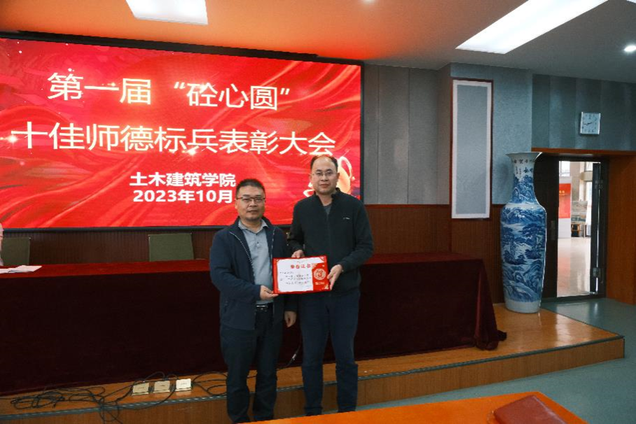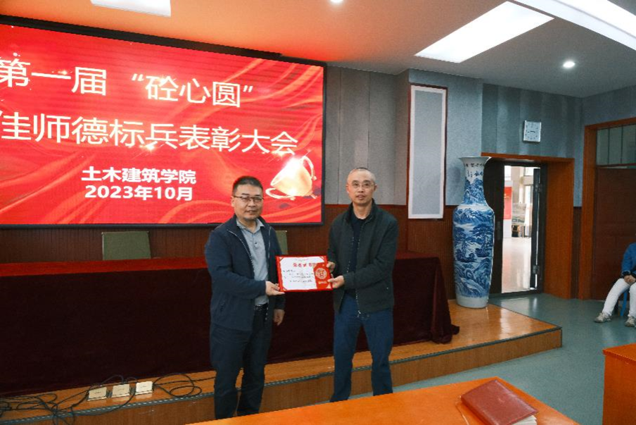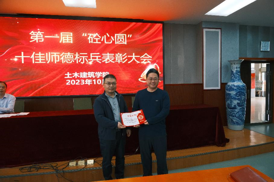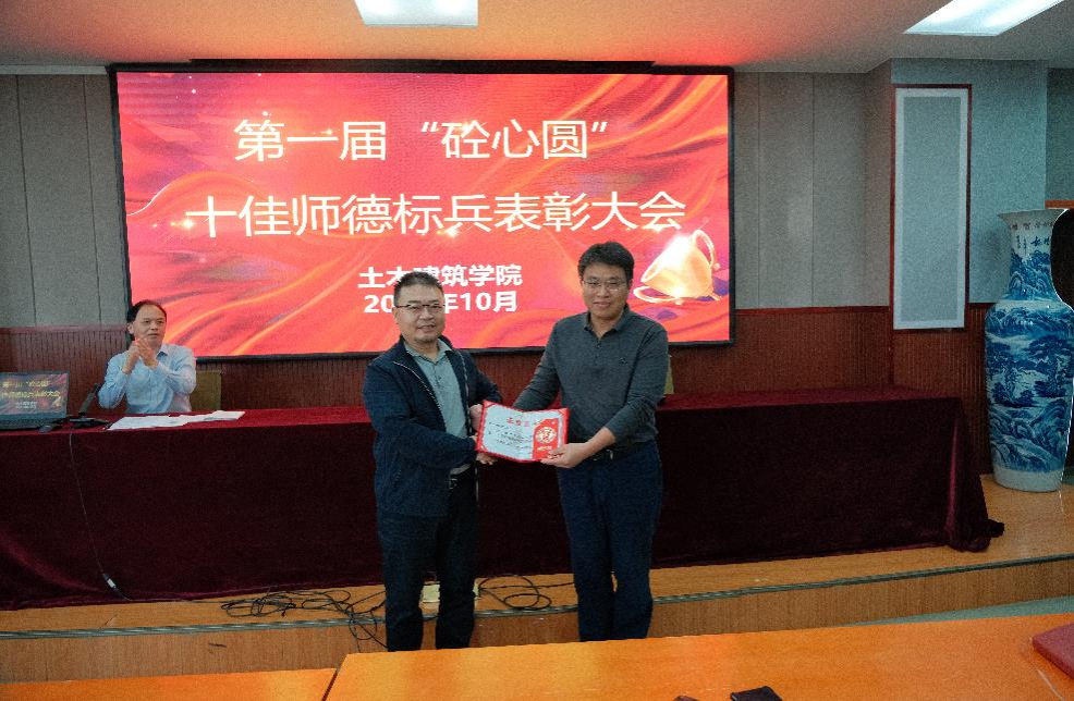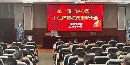 10月12日下午,我院在土建楼教9栋200召开了第一届“砼心圆”十佳师德标兵表彰大会,学院全体教职工出席本次会议,会议由院党委书记陈水生主持。