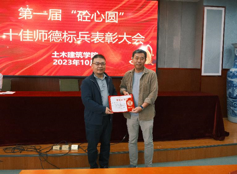 会上,院长庄海洋为十佳师德标兵颁发了荣誉证书及奖金。