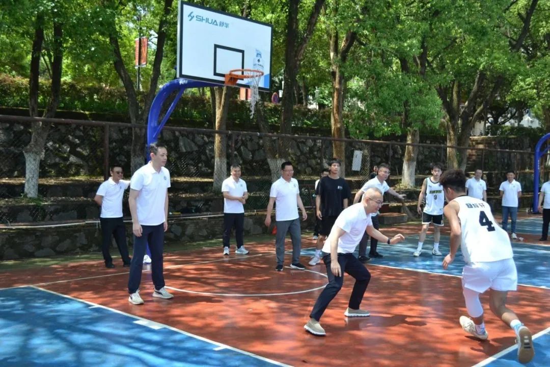 校友们参观校园、与学弟们进行篮球友谊赛