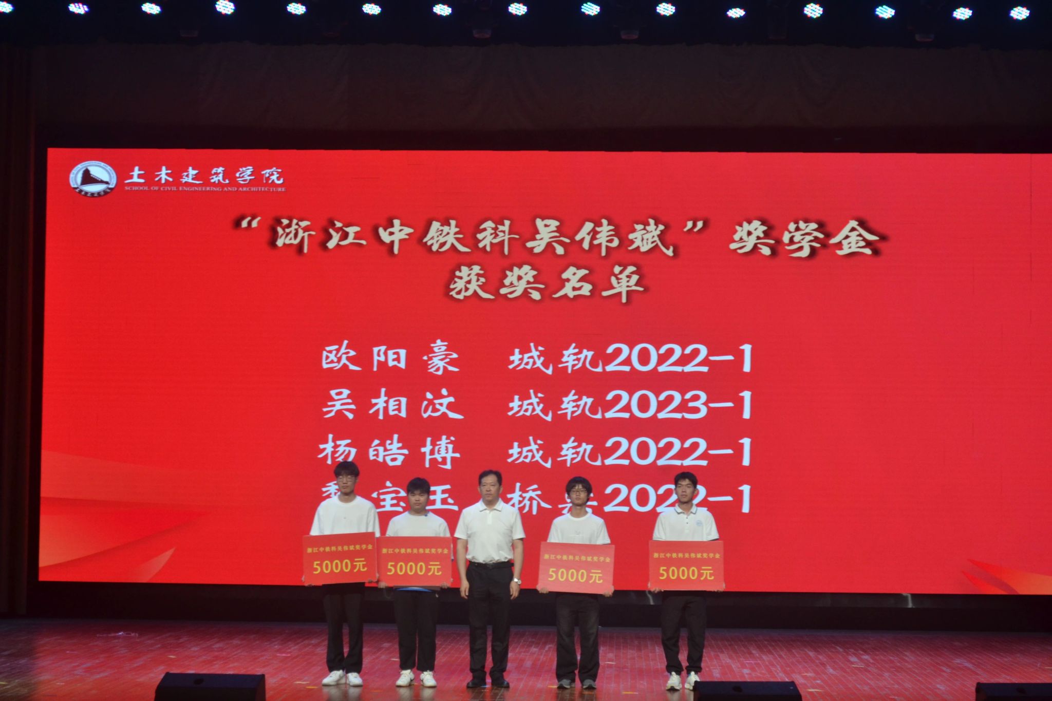 段戈宏老师为获得“浙江中铁科吴伟斌”奖学金学生颁奖