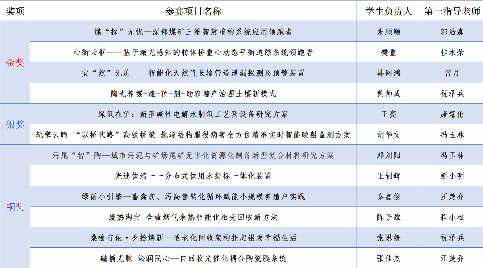 获奖名单