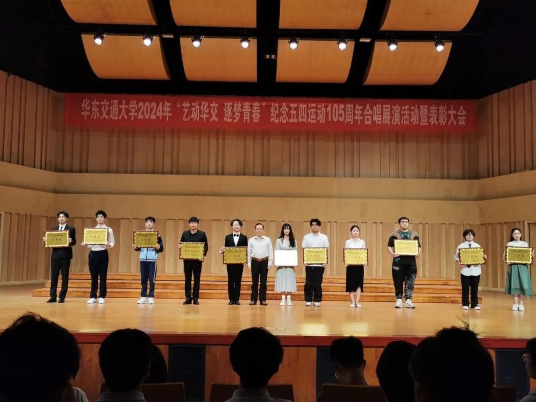 校党委书记柳和生为合唱展演活动“最佳表演奖”“一等奖”“二等奖”“三等奖”颁发奖牌