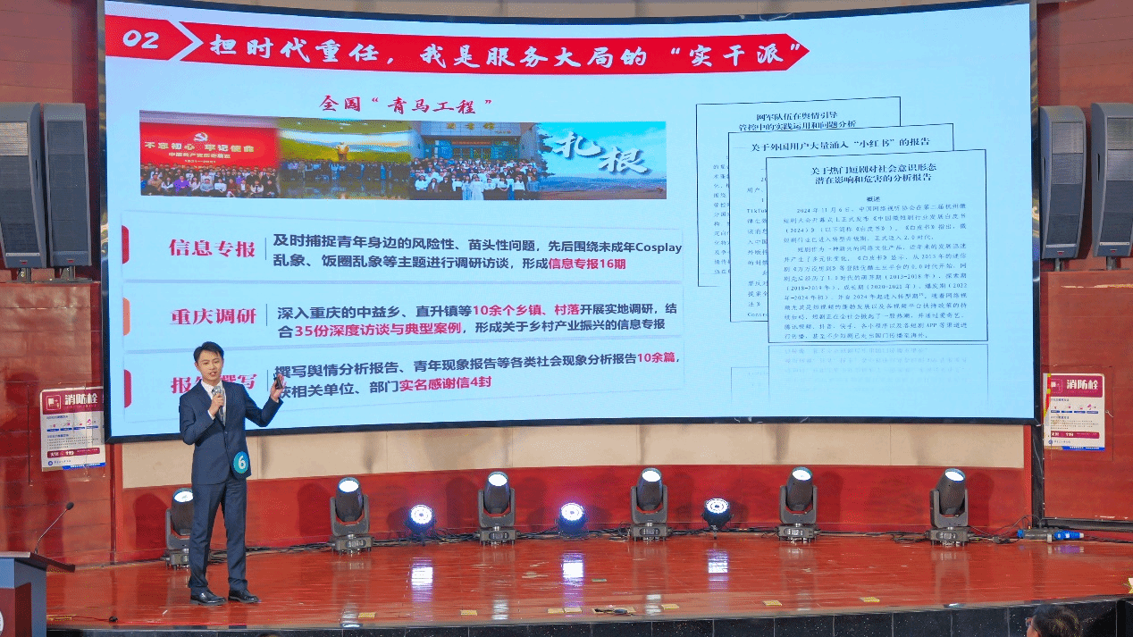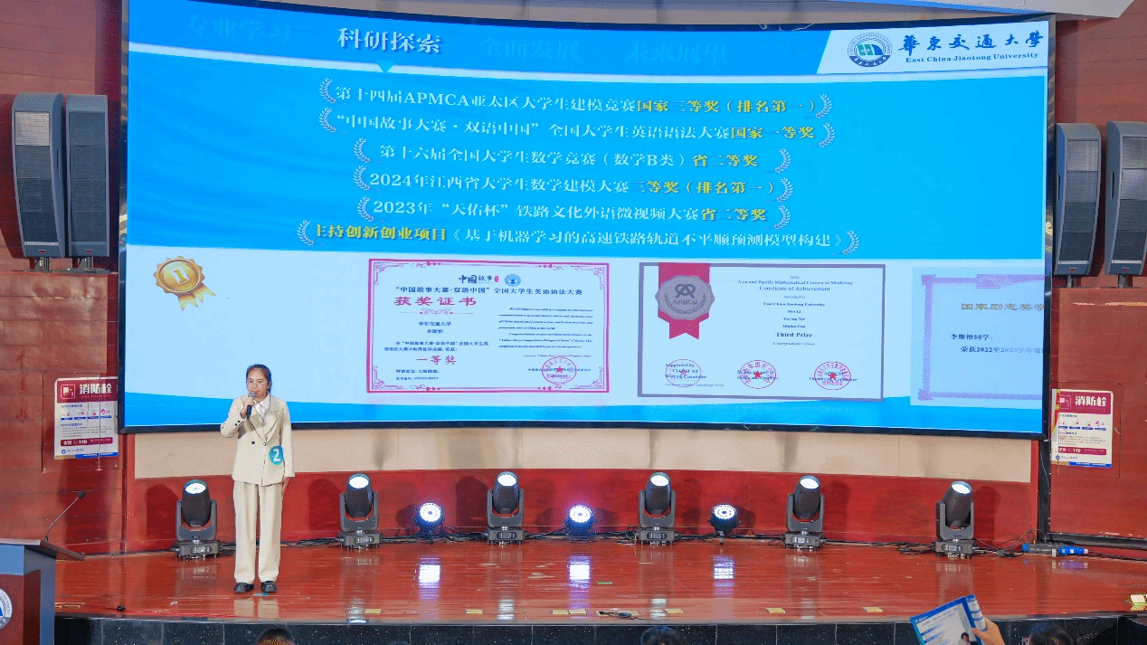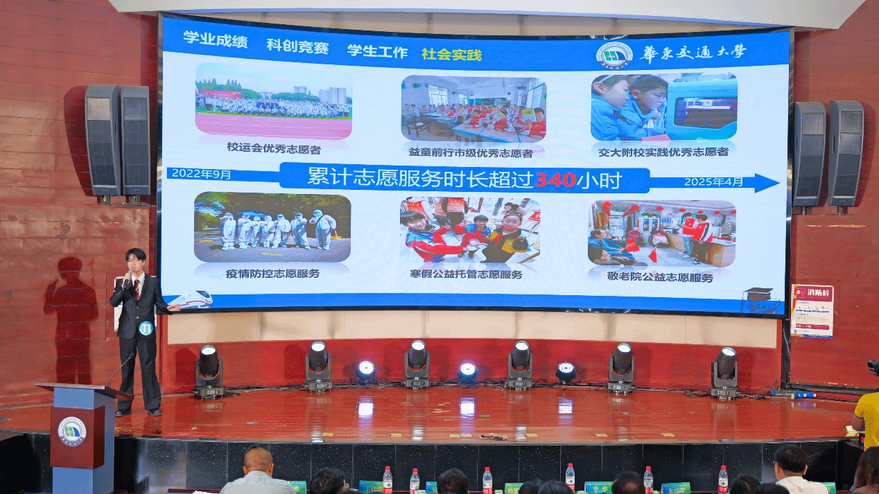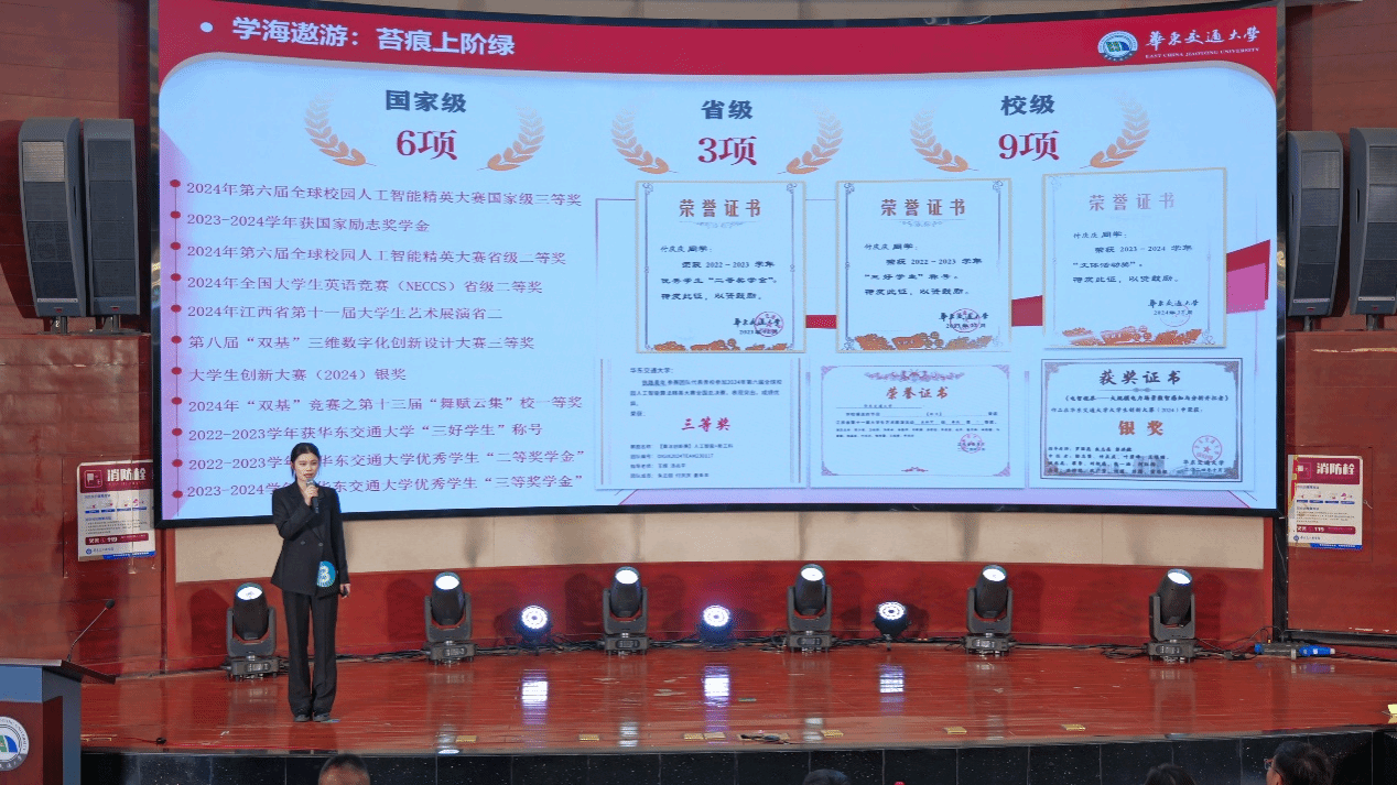 星河璀璨,青春当燃。本次评选分为研究生组和本科生组,21位候选人按照抽签顺序依次上台,通过视频展示、风采展示、选题作答三个环节依次进行个人展示。他们中有学术科研的佼佼者,有志愿服务的践行者,有创新创业的开拓者,也有艺术体育的追梦者。他们的精彩表现是华交学子弘扬“火车头”精神、争做“新铁军”的充分展示,赢得了阵阵掌声。